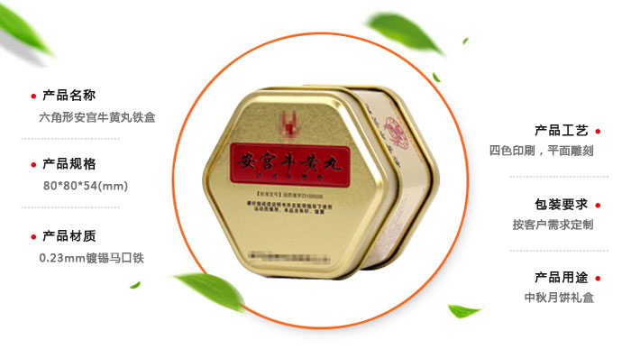 產(chǎn)品咨詢: 六角形安宮牛黃丸鐵盒,一粒裝牛黃丸鐵罐子,牛黃丸包裝盒生產(chǎn)廠家
